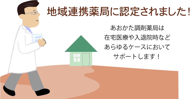 その制度のひとつである「地域連携薬局」とは、入退院時に医療機関等と薬局で患者さんの薬物療法に関する情報共有を行い、在宅医療をサポートします。一定の要件を満たした薬局が、各都道府県知事から認定されます。